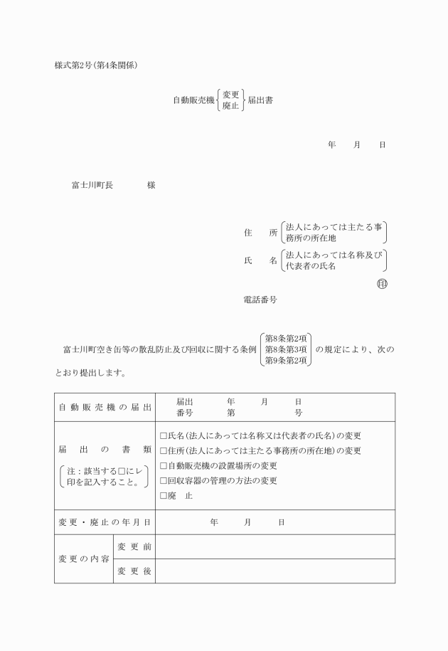 ○富士川町空き缶等の散乱防止及び回収に関する条例施行規則