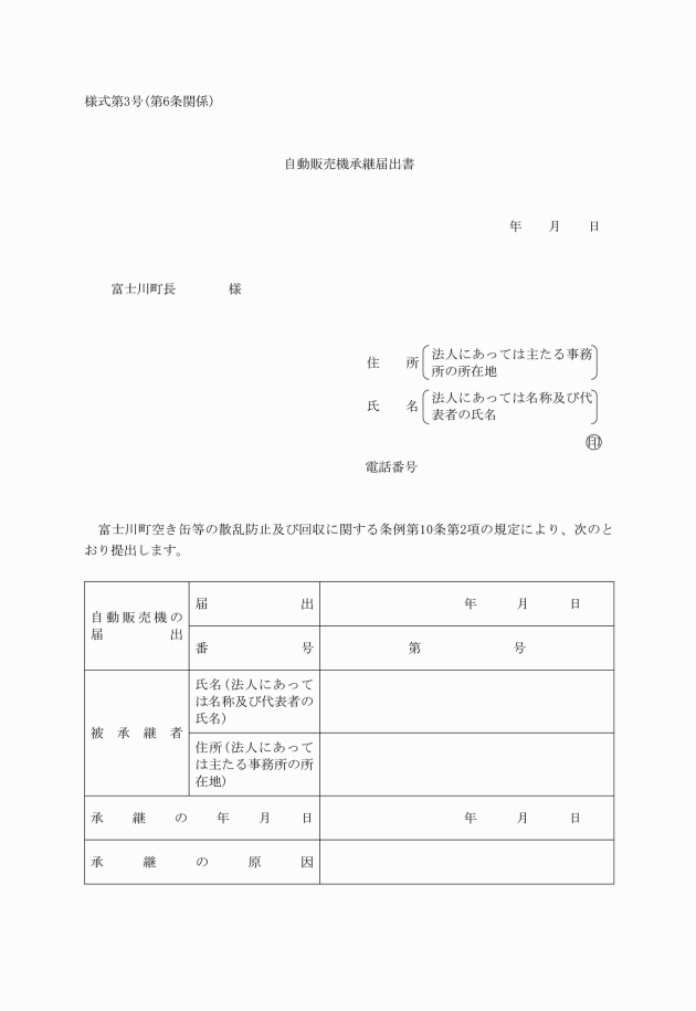 3 町長は、前2項の届出書を受理したときは、その1部に届出済印を押して返付するものとする。