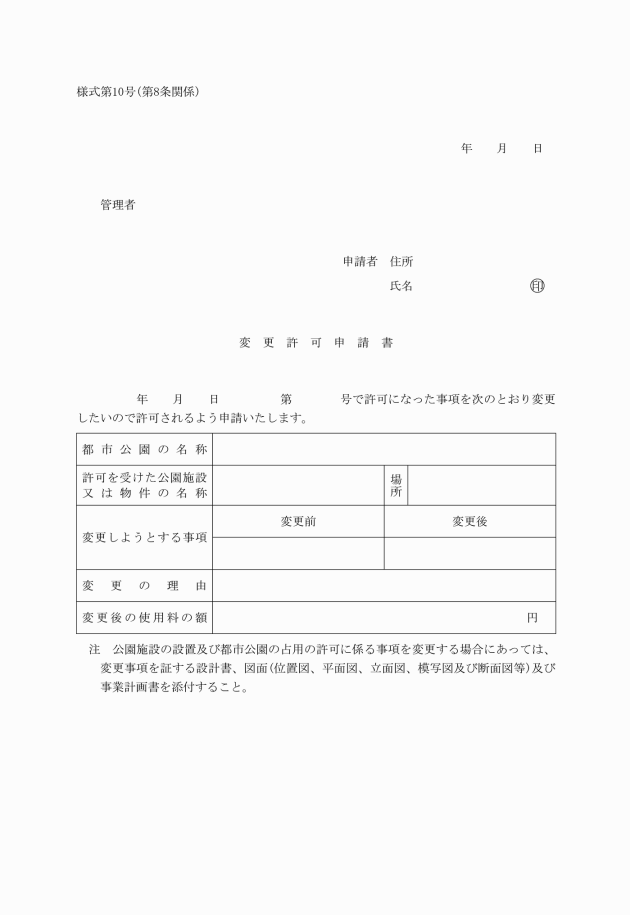 (3) 法第6条第2項の規定による都市公園占用許可申請書 様式第7号