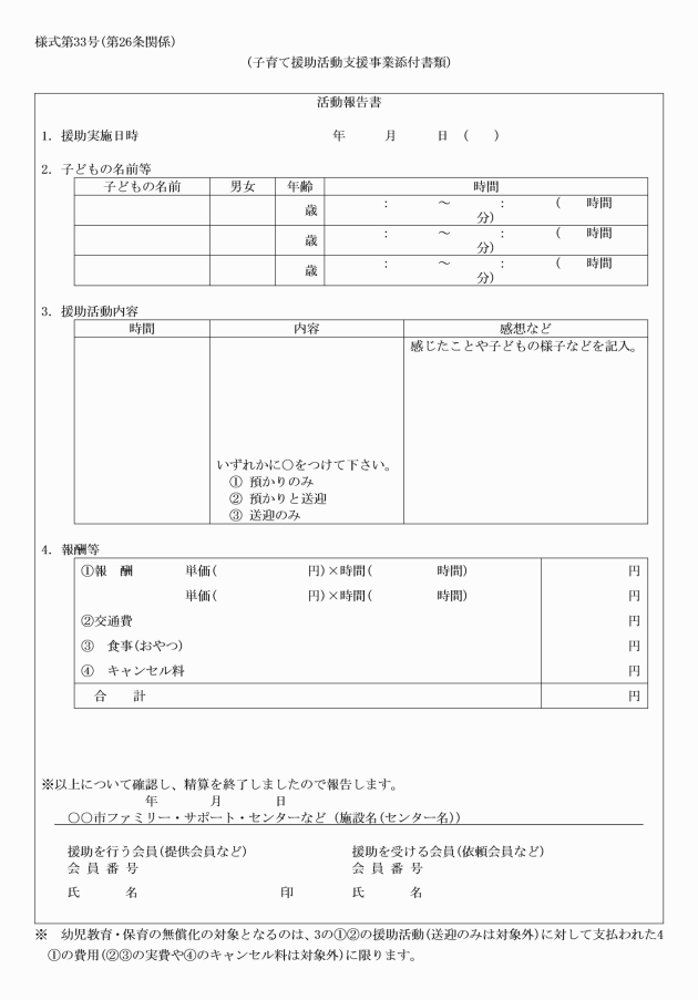 第24条 府令第28条の14第1項の書類は、企業主導型保育事業利用報告書(様式第25号)とする。