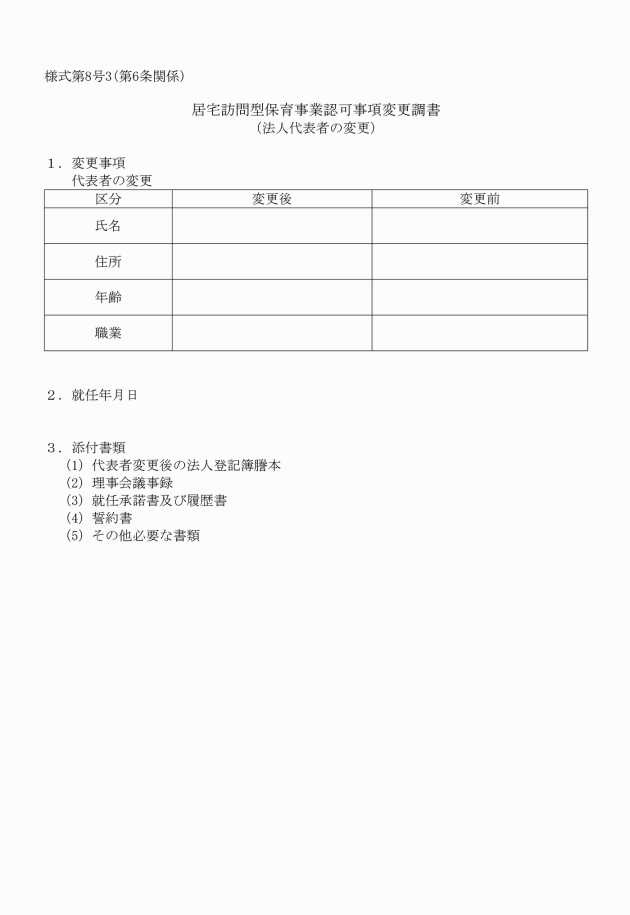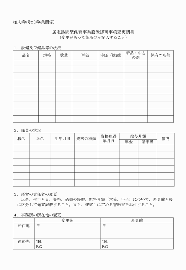 2 児童福祉法第34条の15第2項の規定により、家庭的保育事業等のうち、居宅訪問型保育事業の設置認可を受けようとする者は、居宅訪問型保育事業設置認可申請書(様式第2号)を町長に提出しなければならない。