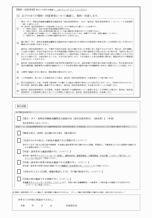 2 価格高騰緊急支援給付金の支給を受けようとする者のうち確認書を送付されたもの(以下「確認者」という。)は、確認書に必要事項を記入し、町に提出するものとする。